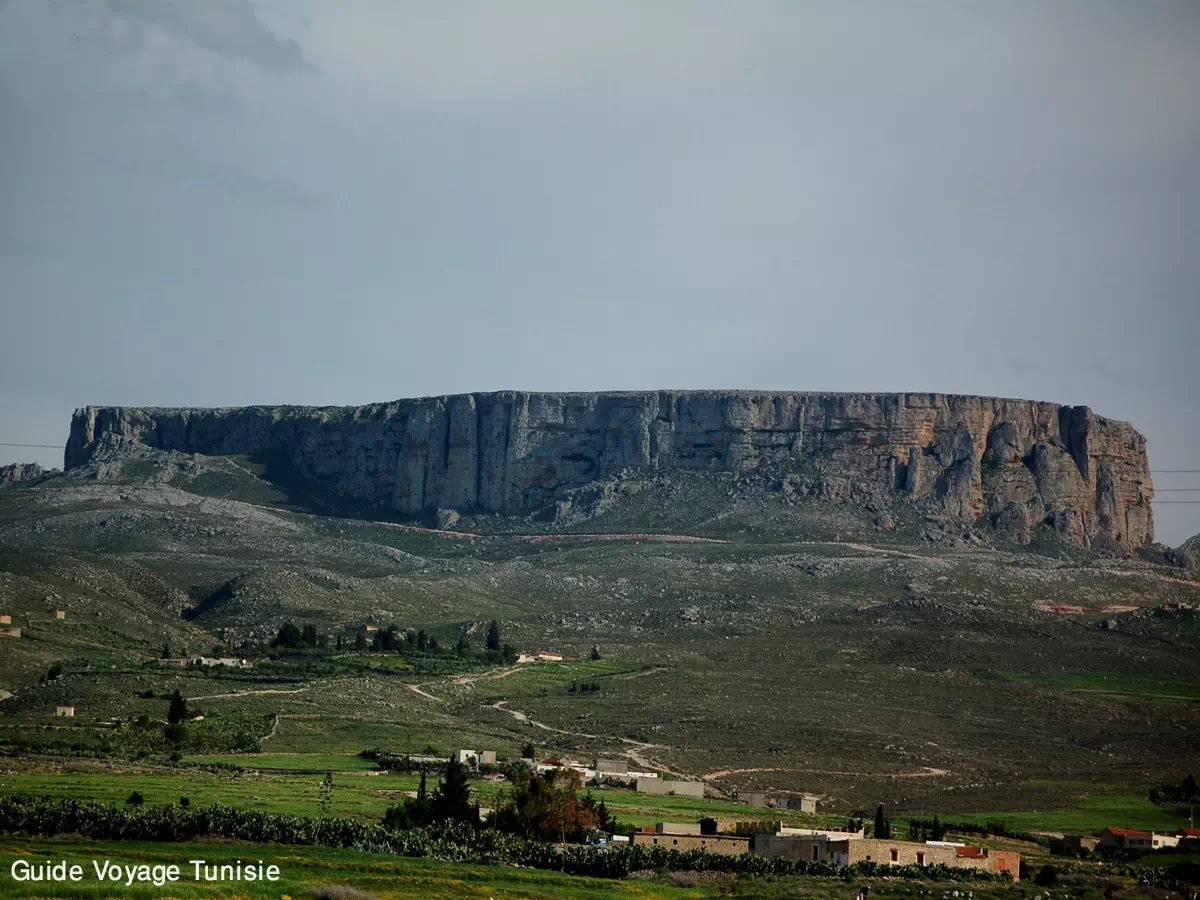 Yugurtha Table Mountain est un phénomène géologique unique, non seulement pour l'Afrique mais aussi pour le monde entier. La montagne de la Table Yugurtha, située dans la ville de Kalaat Sinan, s'élève à plus de 1200 mètres et a une superficie de 80 hectares. L'endroit doit son nom au roi numide Yugurtha, qui a combattu les Romains en 112-105 avant J.-C. et en a fait une place forte pour ses troupes. Selon les géologues, la "Montagne de la Table de Jugurtha" est un vestige d'une roche ancienne, qui a été polie de tous côtés par l'érosion de l'eau et du vent. Des structures de différentes époques ont été préservées au monument. On y trouve des grottes troglodytes, des dolmens, d'énormes réservoirs de collecte d'eau de pluie de l'époque byzantine, les vestiges d'une basilique et un mausolée sur la tombe du saint local Sidi Abd al-Juad. La montagne de la Table Jugurtha a été inscrite sur la liste provisoire du patrimoine mondial de l'UNESCO en 2019.